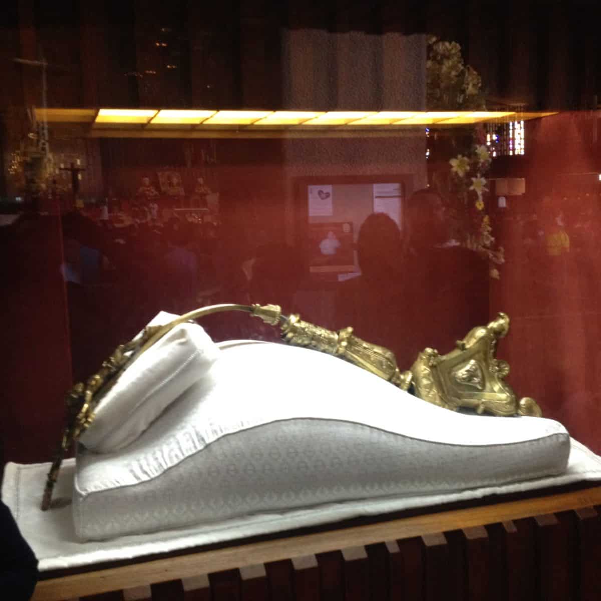 This crucifix was bent when a bomb exploded in front of the image of Our Lady of Guadalupe.